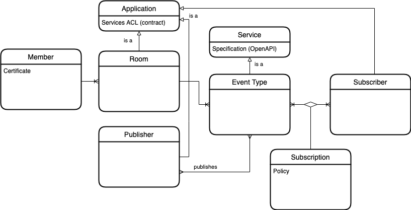 To become a Member of Mediator Building Block participants must fulfill declared requirements and apply for onboarding. In the process of onboarding a Member is registered with Mediator Building Block and gets credentials to connect to Mediator Building Block. Normally it is done the way that a Member provides a certificate of recognized Certification Authority (CA), and requests signed with this certificate are considered legitimate requests of the Member. A member entity can access the Pub/Sub configuration and register a room to publish its own event type as a publisher through its own admin.